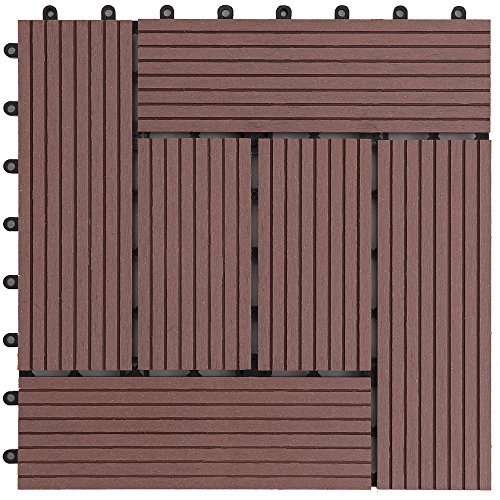 アイリスプラザ ジョイントタイル 十文字溝付 人工木 ブラウン 9枚セット