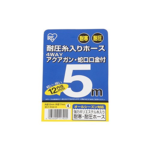 アイリスオーヤマ ホース パーツ 耐圧糸入りカットホースガン 口金付 スリム 5m 12φ ライトブルー