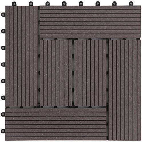 アイリスプラザ ジョイントタイル 十文字溝付 人工木 ダークブラウン 9枚セット