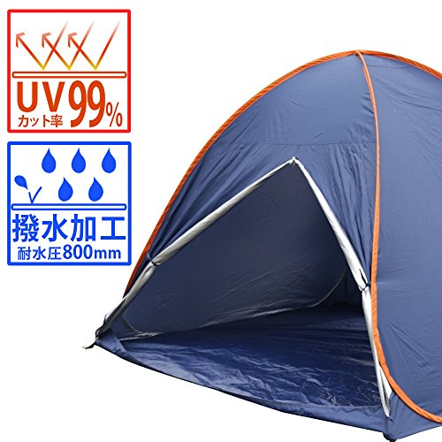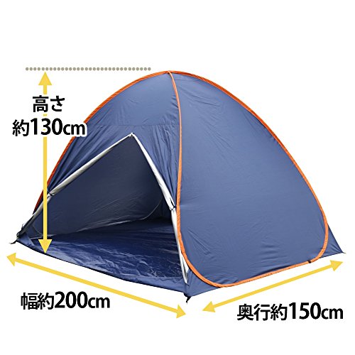 アイリスプラザ ポップアップテント フルクローズ ワンタッチ 200 ネイビー シルバーコーティング UVカット