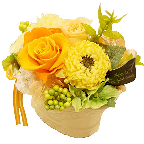 やわらかなピンク色のバラをリボンで飾ったプリザーブドフラワー。