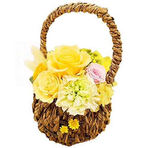 • バスケットから顔を出す、ピンク色のバラをはじめとする女性心をくすぐる色鮮やかなプリザーブドフラワー。