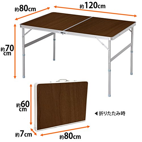 アイリスプラザ テーブル アウトドア 幅120×奥行80×高さ70~39cm ブラウン
