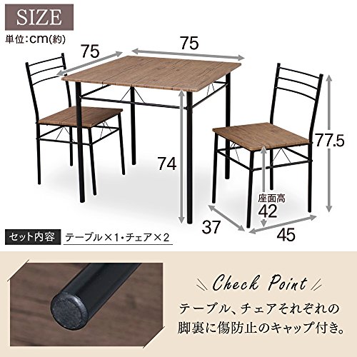 アイリスプラザ ダイニングテーブルセット 3点セット(チェア×2・テーブル×1) ブラウン テーブル/幅約75×奥行約75×高さ約74 チェア/幅約37×奥行約45×高さ約77.5(座面高42) ASP-75
