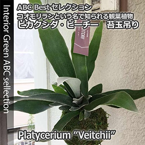 【限定入荷】【ユニークなハンギング観葉】プラティセリウム・ビーチー苔玉吊り