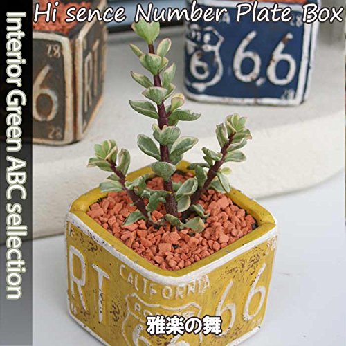 アンティーク陶器ナンバープレートスクエア 多肉植え (イエロー・雅楽の舞)