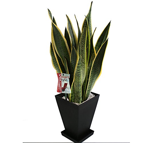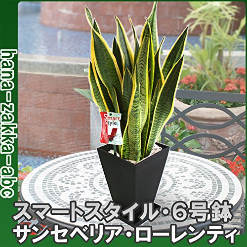 【観葉植物ギフト】 スクエアポット6号鉢・スマートスタイル (サンセベリア, 鉢色:黒鉢)