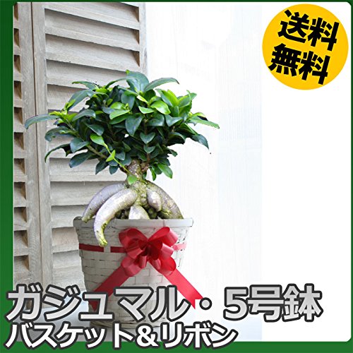 【人気のインテリア・グリーン】ガジュマル(多幸の木)・5号【観葉植物】バスケット・受皿付き