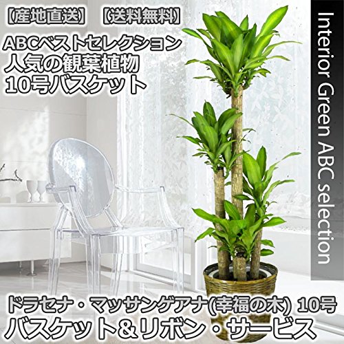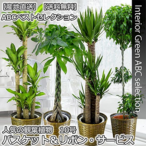 10号鉢・大型 観葉植物 5品種から選べる!鉢カバー・受皿付き! 【産地直送・ABCセレクト】 (幸福の木・ドラセナマッサン)