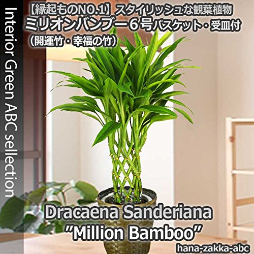 幸運の竹(ドラセナ・サンデリアーナ) ミリオンバンブー 6号鉢・バスケット・受皿付
