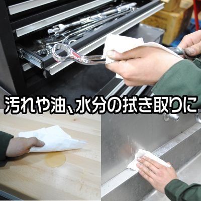 水や油に強く、自動車やバイクのメンテナンス、キッチンなどの水回りの掃除まで使える、ペーパーウエスです。