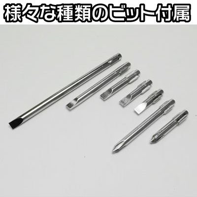グリップ部を回転させることで、ヘッド部先端のビットが回転します。