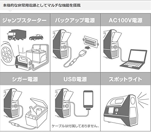 - ●機能:ジャンプスターター・LEDライト・バックアップ電源・USB電源・AC100V電源・シガー電源●重量:4.8kg●付属品:ジャンプスターターケーブル・OBDⅡケーブル・シガー充電器・AC充電器・キャリングケース・シガーバックアップケーブル