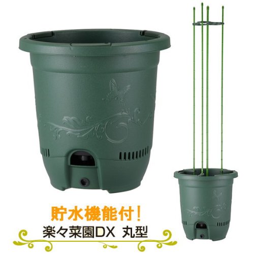 【便利な貯水機能と、可動式の支柱アーム】 楽々菜園DX 丸型 360支柱用フレーム付 グリーン