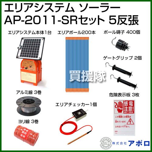 アポロ 電気柵 エリアシステムソーラー AP-2011-SR セット [ソーラー式][5反張:周囲750m]