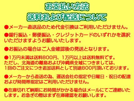 - 1万円未満は送料800円、1万円以上は送料無料です。ただし北海道の離島および沖縄県全域につきましては1回のご注文につき別途送料800円頂いております。