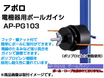 ポリプロピレン樹脂使用 直径42mmφ×47mm フック、蝶ナット付で簡単にポールに取付けできます。 電線のたるみなど張り具合をガイシで調整できます。 ポリプロピレン樹脂を採用し耐久性に優れています。