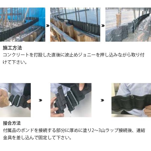 コンクリートを打設した直後に波止めジョニーを押し込みながら取り付けて下さい。