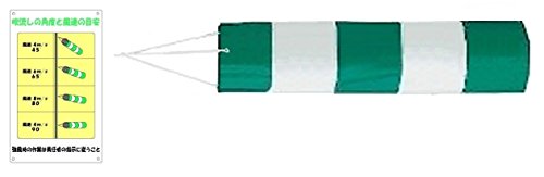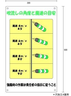 - 表示板仕様:PP樹脂板 サイズ300X500mm (四隅にネジ取り付け用の穴あり) 吹き流しの角度で、おおよその風速が一目でわかります。 風洞実験を行い、クレーン則遵守の目安となるよう計測しました。