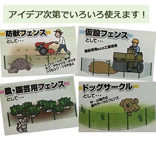 - イノシシ、イタチ、きつねなどの防獣フェンスとして、建設現場などの仮設フェンスとして、農作業や園芸用のフェンスとして。