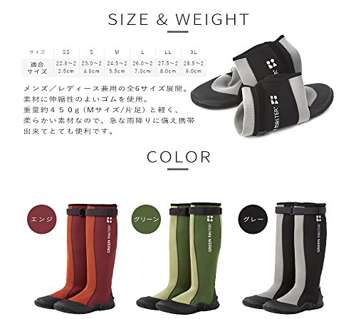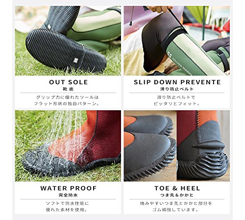 丸めて携帯出来るので急な雨や雪の時でも便利。野外イベントやキャンプをはじめガーデニングや農作業、釣りなどのレジャーやタウンユースなど幅広いシーンで使える機能的なブーツです。