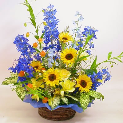 - ■花材:ひまわり・ガーベラ・スプレーバラ・サンダーソニア・デルフィなど(ご要望に応じます)