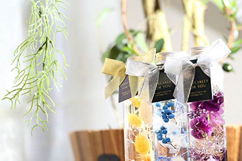 - 自社工場でスタッフが、1本1本丁寧に手作りで製作、温かみのあるインテリアとしてお届けいたします。花材の入荷状況により商品に個体差があり、ひとつひとつデザインが異なります。予めご了承下さい。ボトルサイズ(高さ21.5㎝、直径4.5㎝)