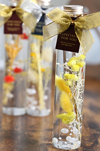 - 自社工場でスタッフが、1本1本丁寧に手作りで製作、温かみのあるインテリアとしてお届けいたします。花材の入荷状況により商品に個体差があり、ひとつひとつデザインが異なります。予めご了承下さい。ボトルサイズ(高さ21.5㎝、直径4.5㎝)