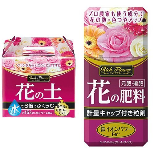 アース製薬 アースガーデン リッチフラワー 水でふくらむ花の土 3.7L×4個 肥料セットです。