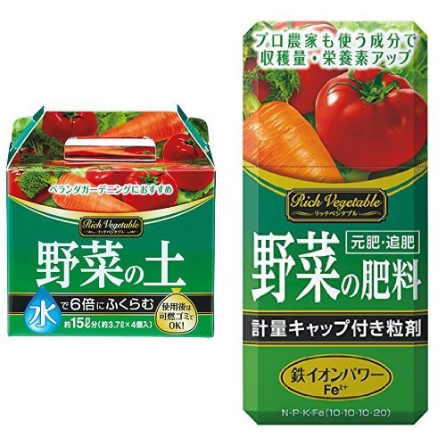 アース製薬 アースガーデン リッチベジタブル 水でふくらむ野菜の土 3.7L×4個 肥料セットです。