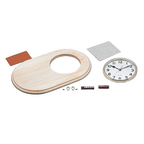 ●直径16cmの大きな時計!●ひろ~い木彫面が魅力!●【セット内容】木部(ふち飾り加工) 390×250×15mm(穴加工済)×1、ビッグ丸型時計 φ160mm×1、吊り金具×2、卒業記念プレート×1、ペーパー×1、ノンスリップシート×1●【サービス品】30点以上お買い上げにつき、学年に1枚教育技法DVD「木彫」付●【商品サイズ】390×250×150mm