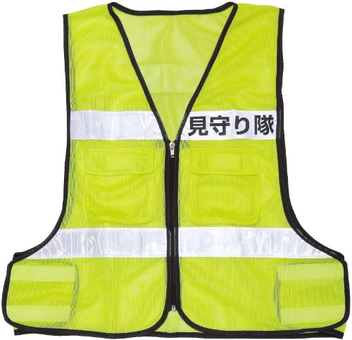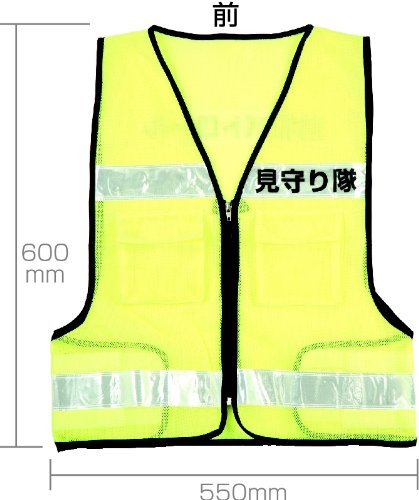 「見守り隊」・「防犯パトロール」の文字印刷済み!名入れ出来ます。ウエスト部分のマジックテープで着脱ラクラク! ※蛍光色のため、実物と色の印象が異なる場合がございます。 600×588mm 176g ポリエステル、PVC PP袋入