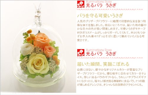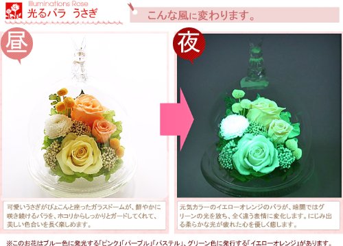 アートフォーシーズン うさぎ”光るバラ”ホタル イエローオレンジグリーン発光プリザーブドフラワー