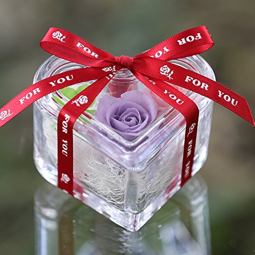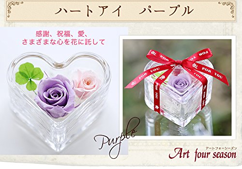 アートフォーシーズン ハート”光るバラ”ホタル 四つ葉のクローバー入り プリザーブドフラワー (パープル)