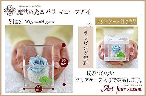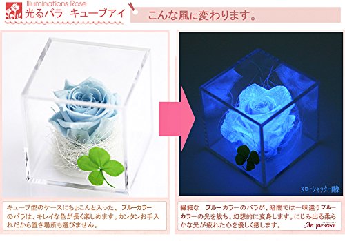アートフォーシーズン miniキューブ (2.ブルー ブルー発光) "光るバラ" ホタル プリザーブドフラワー