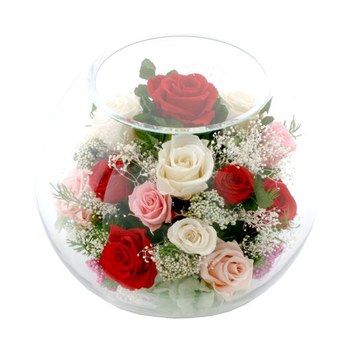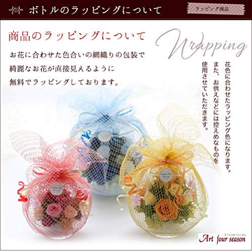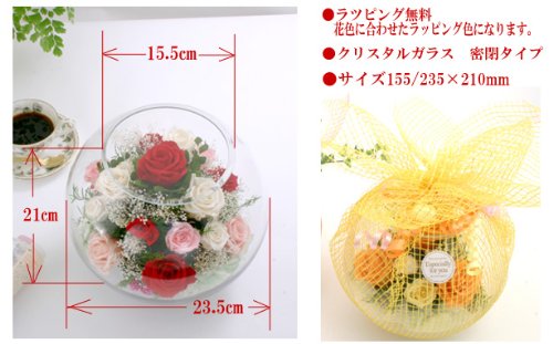 プリザーブドフラワー:お花に水やりは必要ありません。 生花に特殊な加工を施してオーガニック等で染色し、 柔らかな質感と自然にはない鮮やかな色合いと雰囲気を 長い間お楽しみいただけるようにしたお花です。
