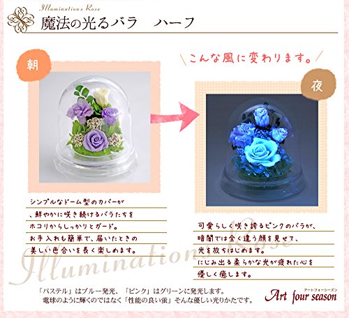アートフォーシーズン ハーフ”光るバラ”ホタル パープルブルー発光 プリザーブドフラワー