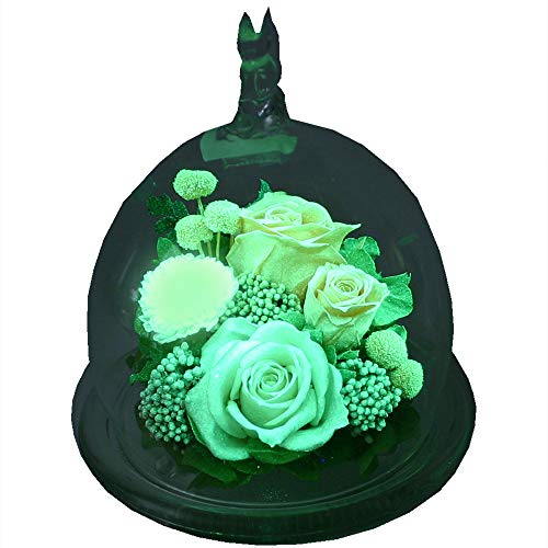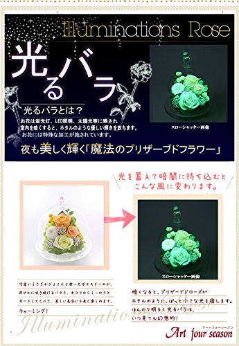 新品プリザーブドフラワー:クリアケース付き商品です。夜、蛍光灯やLED等の光をあて暗闇に持ち込むと バラがホタルのように光ります。お花に水やりは必要ありません。 生花に特殊な加工を施してオーガニック等で染色し、 柔らかな質感と自然にはない鮮やかな色合いと雰囲気を 長い間お楽しみいただけるようにしたお花です。