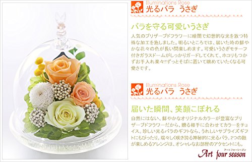 アートフォーシーズン うさぎ 光るバラ プリザーブドフラワー (イエローオレンジ)