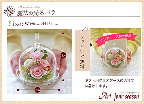 新品プリザーブドフラワー:クリアケース付き商品です。夜、蛍光灯やLED等の光をあて暗闇に持ち込むと バラがホタルのように光ります。お花に水やりは必要ありません。 生花に特殊な加工を施してオーガニック等で染色し、 柔らかな質感と自然にはない鮮やかな色合いと雰囲気を 長い間お楽しみいただけるようにしたお花です。