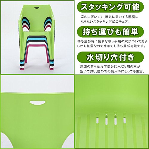 オープンカフェの本場であるイタリア製です。鮮やかなカラー展開と身体にフィットするフォルムが人気です。スタッキング可能なので使用しない時には省スペースで収納可能です。水切り穴もついており、野外でも安心してご使用頂けます。重量も約2.3㎏と軽く、女性でも移動や持ち運びが可能です。