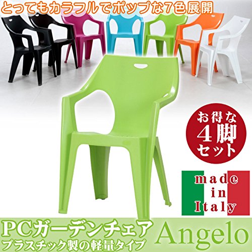 イタリア製 ガーデンチェア イス 4脚セット 『 アンジェロ 』【IT】《西濃》ライトグリーン(#9879278×4) 58×54×80cm 軽量 スタッキング可能