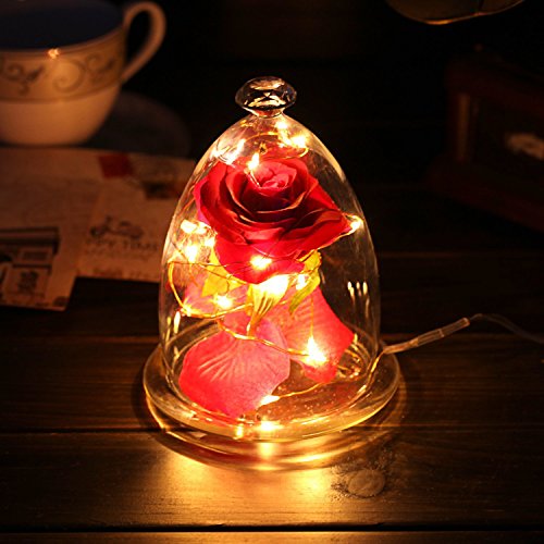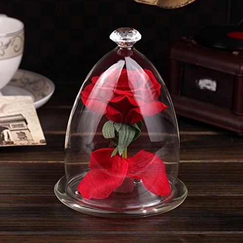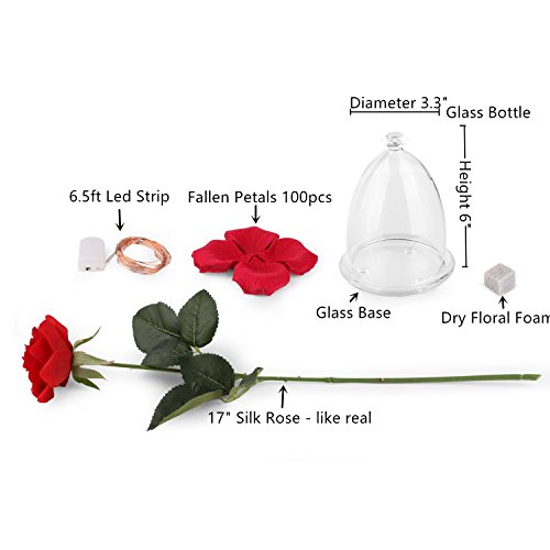 Beauty and the Beast 2017 Rose Set Red Silk Rose and Led Light with Fallen Petals in Glass Bottle【クリスマス】【ツリー】 [並行輸入品]