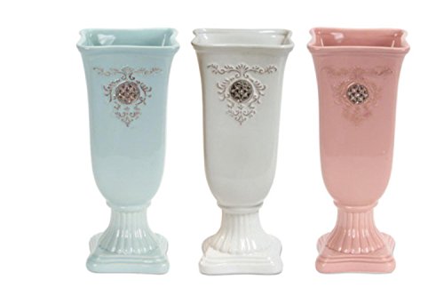 Set of 3 Embossed Damask Print Pink White and Blue Square Vases 9.5【クリスマス】【ツリー】 [並行輸入品]