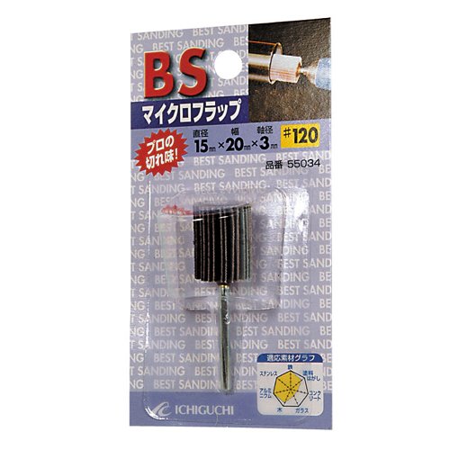 ●ステンレス、金属の研磨サビ、塗料はがし、木工に。●フラップホイルを小径にしました、細部の研磨に対応します。●パッケージサイズ/縦:110mm横:60mm高さ:35mm●パッケージ重量:10g●用途:ステンレス、金属の研磨サビ、塗料はがし、木工等●サイズ(直径×幅×軸径):15×20×3mm●粒度:#120●砥材:A●最高使用回転数:20000rpm
