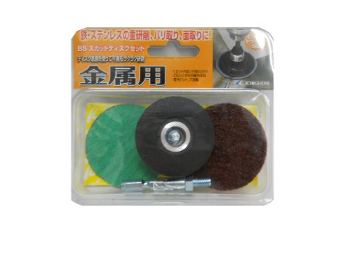 - セット内容:スカットディスク専用パット(Φ50mm)、専用六角軸(六角軸)、ジルコニアペーパー(50mm・粒度:60・最高使用回転数:3,000r.p.m)、けずる不織布(50mm・中目・最高使用回転数:3,000r.p.m)