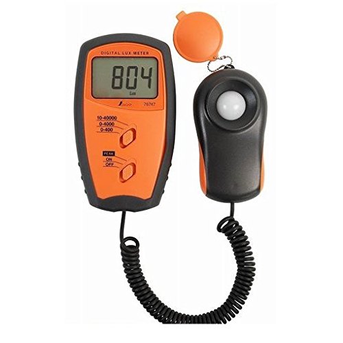 【商品説明】 ■用途 明るさを測定するデジタル照度計 ■機能 液晶表示を見ながら受光部を調節できるセパレート式。 読み取りやすい大文字デジタル表示。 測定した最大数値を表示するピークホールド機能付。 測定範囲を3段階に切替可能。 ■仕様 ■測定範囲:0~40000ルクス ■分解能:0.1ルクス ■測定精度 ●0~10000ルクス:±(4%+10dgt) ●10001~40000ルクス:±(5%+10dgt) ■電源:9V電池 1本 ■材質 ■本体:ABS樹脂 ■受光部:フォトダイオードセンサー 液晶表示を見ながら狙った場所の明るさを的確に測定 受光部に直射日光を当てないで