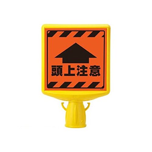 【商品説明】 【特長】 ■コーン(別売)に取り付けるだけの、手軽で効果抜群の表示ボードです。 ■表示面が四角いので大きくて分かりやすい。チェーン等で連結出来ます。 ■鮮やかな蛍光色のステッカー表示が人目を引きます。 【用途】 ■工場・事務所・物流倉庫・商業施設・駐車場・駐輪場などへの設置に最適です。 【仕様2】 ■内容:↑頭上注意 ■本体寸法(mm):412×280×88 ■表示面寸法(mm):250×250 ■本体色:イエロー ■重量(kg):約0.4 ■摘要:片面表示 【材質/仕上】 ■本体:高密度ポリエチレン