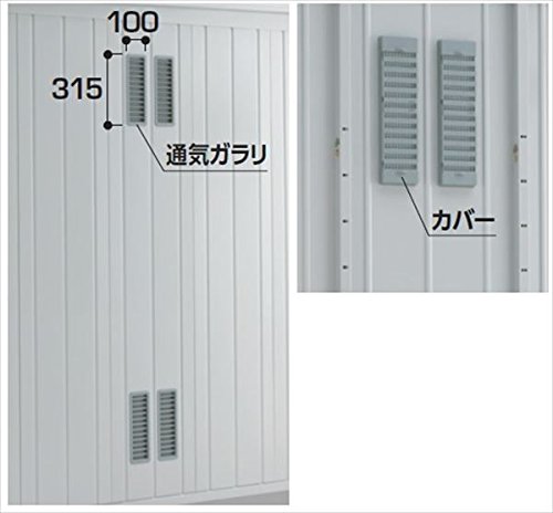●庫内の換気に役立つ通気ガラリが4個付いています。換気時に虫の侵入も防ぐ安心設計です。庫内側のカバーを上下することで換気量が調整でき、ほこりや雨水の侵入も低減できます