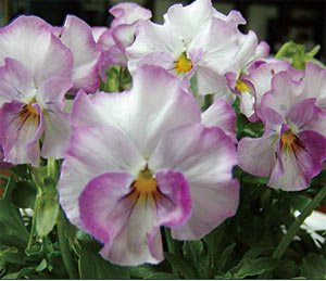 平塚弘子さんが育成した淡いピンクからライラック色を帯びる中輪タイプのビオラです。